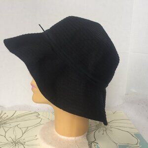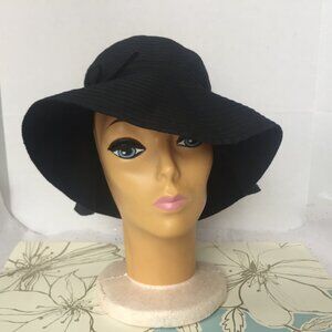 Classic Floppy Hat for any summer outing or beach day to protect your face from the sun. Floppy lightweight style so you can bend it however you like to cover you. Small bow detail on brim. Classic and sophisticated. Black 100% Cotton. Very comfortable. Lined in floral green fabric. Nice because its packable and easy to fold up.