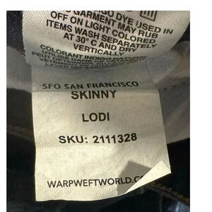 Keywords: Warp + Weft, skinny jeans, size 27, high rise, dark wash, stretch denim, women's jeans, 5-pocket design, comfortable fit, versatile jeans