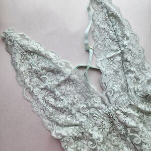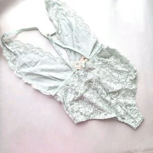 We Are HaH Free People Coming In Haht Lace Bodysuit In Something Blue mint