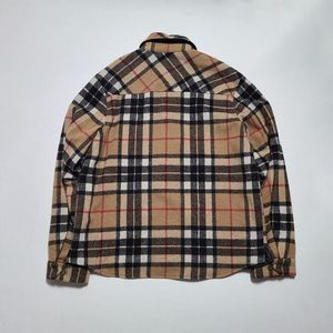 We11done Oversized Half-Zip Front Check British Wool Shirt Jacket Camel One Size