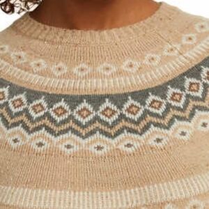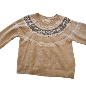 Features: Colors: Tan (Beige Donegal) Traditional fairisle raglan crewneck sweater Tweed yarn Classic fit, size Medium