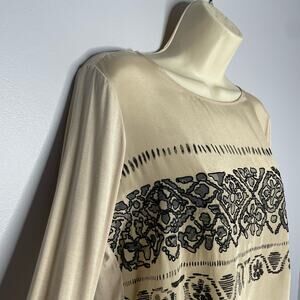 Weekend Max Mara Beige Embroidered Long Sleeve Blouse Lightweight Women’s S