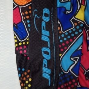 Weimo Star Cycling Shirt, L, Multi color Design, rear pocket pouches and zipper pocket, elastic hem, full zip. JPOJPO cycling team. NWOT