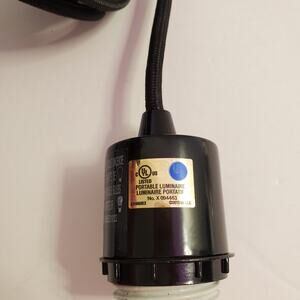 Black. Plug into wall socket. Add any lampshade you want. Not included. 15 ft.