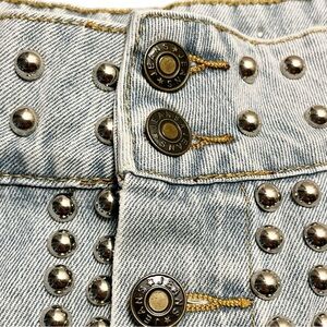 Western Boho Silver Studded Light Blue Distressed Denim Skort Size XS