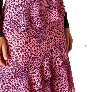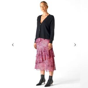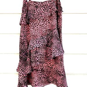 The wild cat skirt is guaranteed to cause envy, whether you style it by day or by night. Designed in an easy midi length, with cascading frill detailing that add volume, it will go perfectly with chunky knits and leather boots. Never Worn.