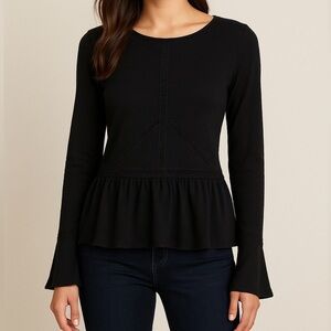 White House Black Market Black Bell Sleeve Peplum Top, size xs