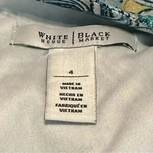 White House Black Market dress. Blue, green and white. Paisley print. Lined. Zipper with hook and eye closures. Gorgeous. Excellent condition. Size 4.