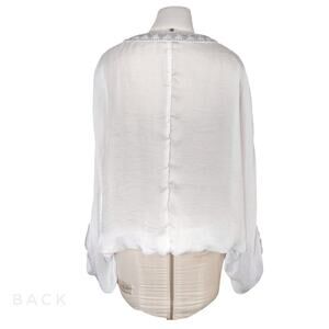 White Ponch Style Blouse by BLACK Boho Top w/ Silver Beads Goddess Festival Sz M