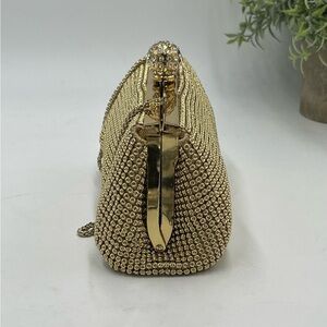 This soft and luxurious metal clutch from Whiting & Davis is topped off with a stylish crystal-studded clasp.