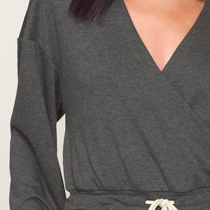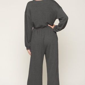Wide Leg Long Sleeve Jumpsuit V-neck Grey Warm Soft loungewear Sz. S by Gigio
