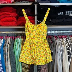 Wild Fable yellow/orange/green print adjustable strap smocked back romper size S