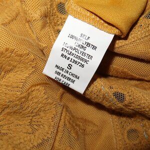 Make a statement in this stunning embroidered lace maxi dress, featuring a dramatic plunging V-neckline and built-in shorts under a sheer lace overlay. The rich burnt yellow color adds a warm, golden touch perfect for special occasions or styled shoots.