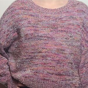 Wild Fable Crewneck Tinsel Sweater pink sweater with crew neckline Tinsel design lends extra sparkle Acrylic-blend fabric and oversized fit for cozy comfort.