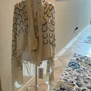 Wildfox Women's Signature Ivory Cream Wrap Scarf Creasant Logo Fringe Hem New