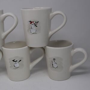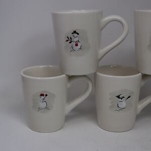 Williams Sonoma White Snowman Coffee Cups Holiday Christmas Winter Set of 5