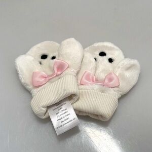 #WinterWhite #PinkPlushMittens #BabyGirl #FunnyRabbit #DesignMittens #CozyMittens #SoftTouch #ChillyDays #SnugFit #WinterFun #PristineCondition