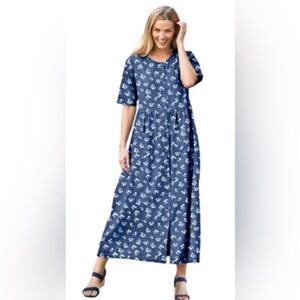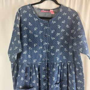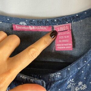 Woman Within Floral Short-Sleeve Denim Dress Size:16W Medium Stonewash Modest