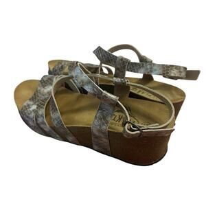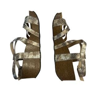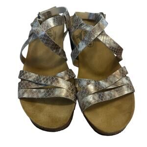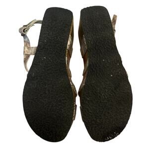 Women 41 10 Plakton Platform Wedge Sandals Shoes Strappy Leather Gold Print