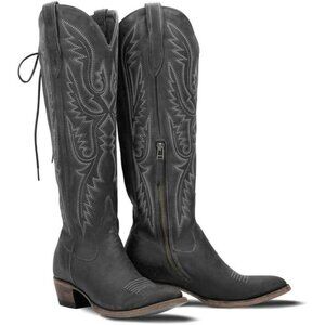 🆕Women Black Polyurethane Over the Knee Adjustable Thigh High Cowgirl Boot