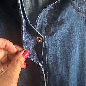 🤩Women Denim Jumpsuit Sz S JUICY COUTURE Embroidered Blue soft and comfy Romper