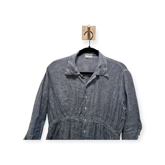 Women Long Sleeve Denim Button Up Shirt Dress Midi Jean Dress Flowy USA Made 396