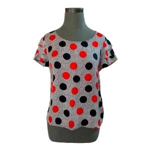 Women Top MYNE Ashley Ann Red Black Polka Dot Ruffle Blouse Button Back Silk Top
