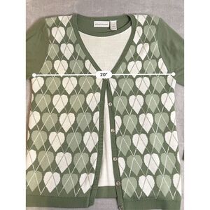 Women’s 2in1 Green Hearts Argyle Pattern Sweater SMALL. Button down. Bottom piece is attached. Runs a bit big.
