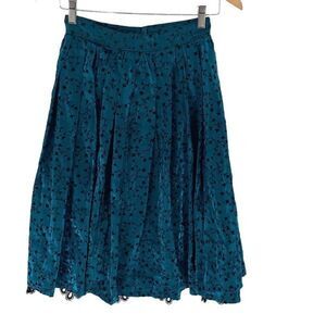 Women's A-Line Skirt Generic Pleated Laced Hemline Hook & Eye Blue Size 2/4