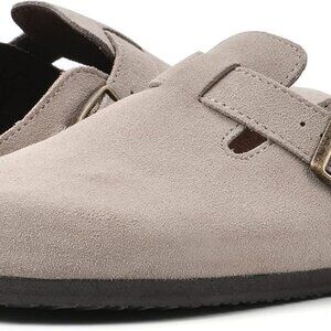 Get cozy in the Bari clog by Footbeds . This clog features a soft suede upper and faux shearling lining to keep your feet toasty all season long. Great for both, going out and staying in.