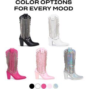 Dazzling Details: Featuring rhinestone fringe and jewel studs, these boots add a touch of sparkle to your step. Perfect for making a bold fashion statement.