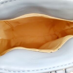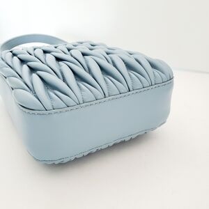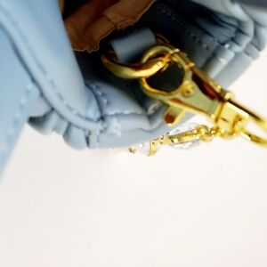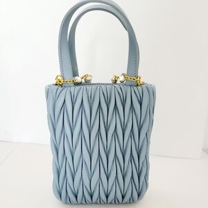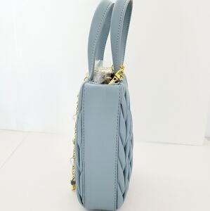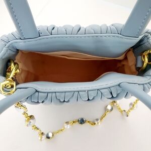Women's Blue Pleaded Faux Leather Tote Handbag with Pearl Chain Strap