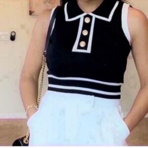 Women's Button Front Striped Collar Sleeveless Sweater Vest Knit Top size small
