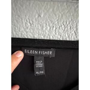 Womens Eileen Fisher 100% Silk Black Short Sleeve V-Neck High Lo Blouse size XL
