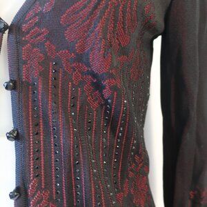 Womens Escada Black Red Floral Knit Cardigan Sweater 36 US/S