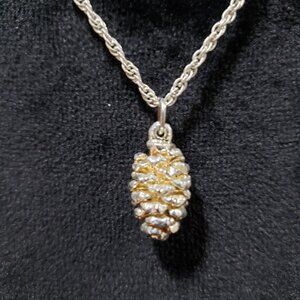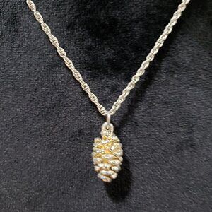 Womens Fashion Gold Tone Pinecone Pendant Collar Necklace with Lobster Clasp.