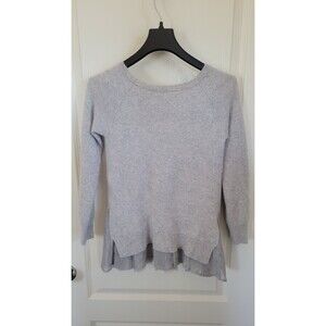 Women's Garnet Hill 100% Cashmere Gray Long Sleeve Pullover Knit Sweater. Size XS. Has a very nice embroidery detailing on the bottom where the layered fabric is. This is an extremely soft and cozy sweater! Beautiful gray color. Matches anything! No holes, stains, or rips!