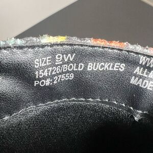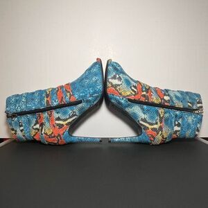 Womens HOT TOMATO Bold Buckles Snake Print Side Zip Open Toe Heels / Size 9