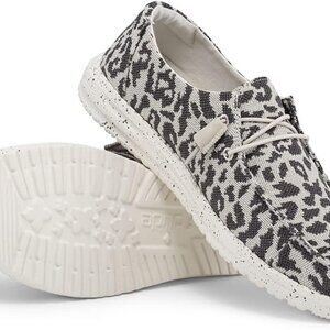 Features: Lightweight slip-on loafers with a fun grey cheetah print. Textured textile upper and a cozy cotton lining make these perfect for casual outings, running errands, or just adding a touch of playful style to your day. The slip-on design with a lightweight EVA sole offers easy wear and all-day comfort.