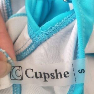 women, swimsuit, swimwear, one piece, chlorine resistant, cupshe, slimming, small, 4-6, swim wear, cruise, tummy control, blue, pleated, bathing suit, peek-a-boo, size small, stylish, halter, strappy, sexy, cute, padded, fashionable, pool, beach, party, summer, new, top rated