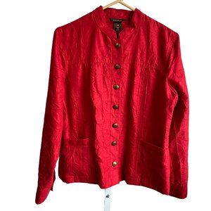 Women's Vintage Multiples red crepe gold button jacket blazer sz M