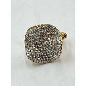 Wavey Pave crystal Gold tone ring Ring Boho Cocktail Pave Rhinestone Wavy Round Setting