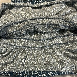 Cute and cool for the summer, this Wonderly Women’s blouse has elastic across the neckline and underarms, with another double row of elastic just under the chest area. Measures approximately 26” from shoulder to hem and 17” PTP. Shoulder straps are approximately 2 1/2” wide at the top of shoulder, and from shoulder to neckline they have an approximate 6” drop.