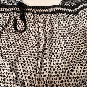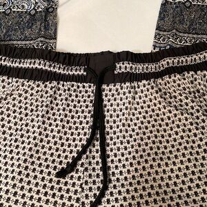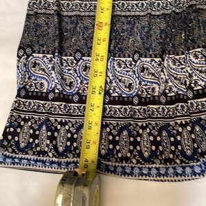 Women’s long fun pants size small/medium black white and blue pattern great condition 40 inches long. 98