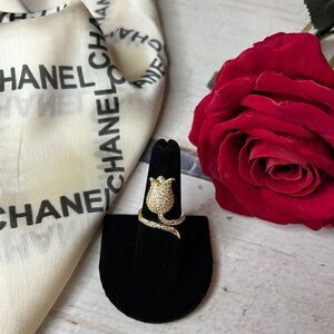 Oh-so-pretty, this lovely ring features a wraparound design that ends in a beautiful rose to adorn your hand in feminine beauty. Pave-set with 1.12 carats in cubic zirconia rounds, you'll reach for this beauty whenever you want to make an impression.