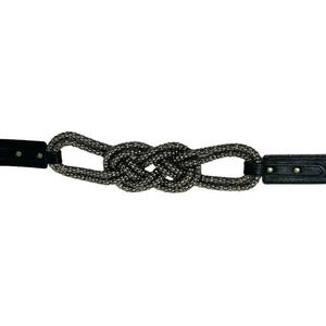 Womens Black & bronze gold chunky metal knot stretch belt avant garde size small