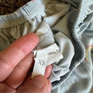 Very good used condition! Super soft pajama set with very stretchy waist band. Size XS but could probably fit a smaller small. Great mountain, cloud, and moon pattern. Wording says “love you to the moon & back”.