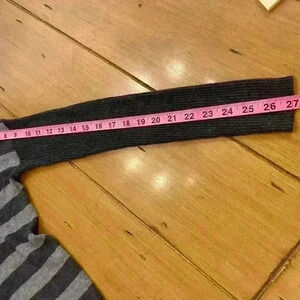Pretty, two tone gray sweater. It is marked a P but without a specific size.The pit to pit measurement is oversized but the size of the arms and wrist area, which does not stretch, is small. This would be a very pretty oversize sweater on a small. Please let me know if you have any questions and I appreciate you considering this item.🌷