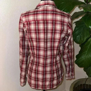 Woolrich Women’s 100% Cotton Western RED Plaid Fitted, Long Sleeve, PEARL Snap Buttons blouse top in EXCELLENT condition! No holes or stains. Size: Medium