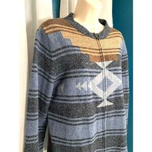 Woolrich Zip Up Sweater Womens Size Large Aztec Blue Brown Aztech Lambs Wool